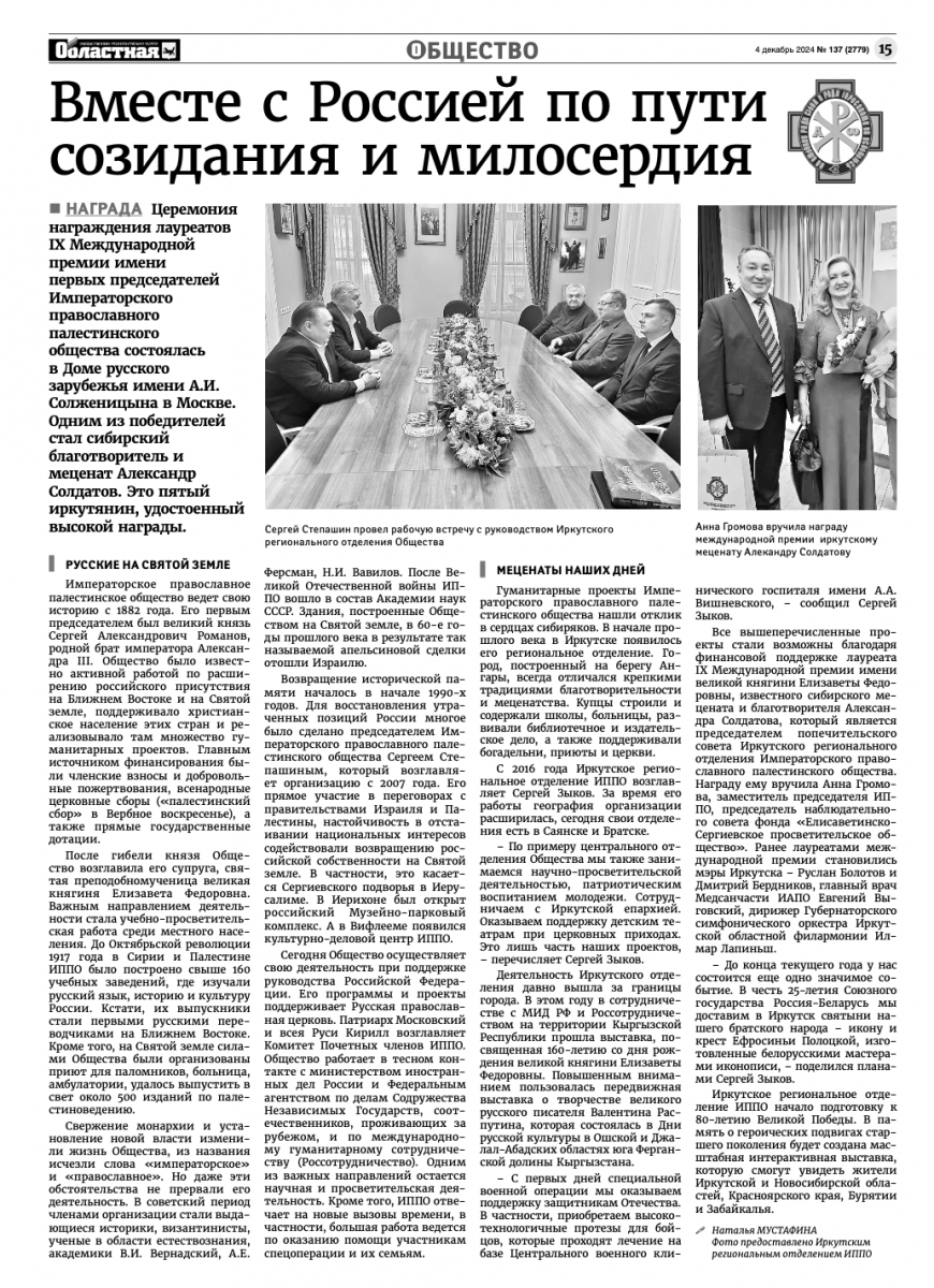 Иркутск публикация газета международные премии имени Великого князя Сергия Александровича и имени Великой княгини Елизаветы Федоровны