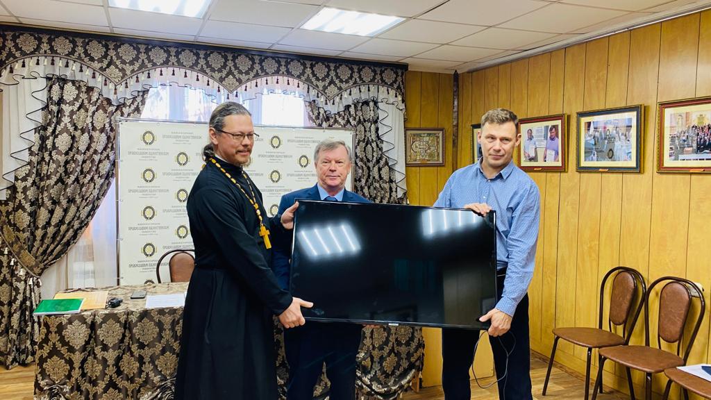 Руководитель Курганского отделения ИПППО Александр Брюханов передал в дар воскресной школе при Спасо-Преображенском Храме села Батурино многофункциональный телевизор для просветительской работы.