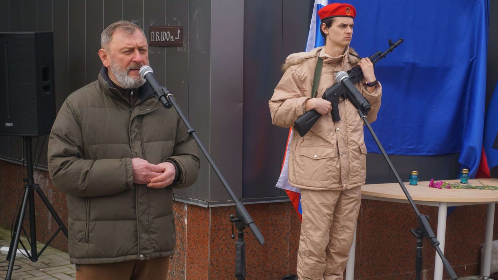 На митинге Борис Трима приветствовал гостей мероприятия, рассказал о гуманитарной миссии Симоса Панагиотидиса на Донецкой земле. Арсен Панагиотидис также выступил с приветственным словом и передал поздравления от имени Председателя ИППО Сергея Степашина и командира Спецназа «АХМАТ», Героя России, генерала Апти Алаудинова. Благочинный Мангушского муниципального округа, настоятель Свято - Михайловского храма Отец Константин провел службу и обратился с проповедью к участникам митинга.