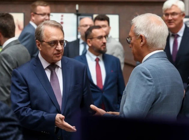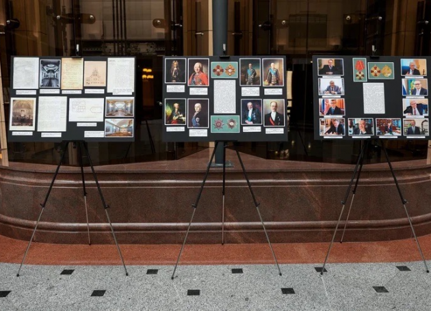 В атриуме была размещена выставка об историческом пути российской дипломатии, приуроченная к 220-летию отечественного внешнеполитического ведомства.