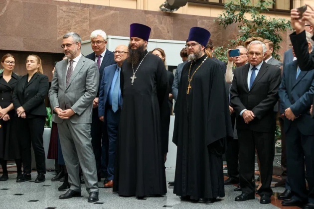 На мероприятие собрались российские дипломаты, в том числе ветераны дипломатической службы, кавалеры государственного ордена Александра Невского, сенаторы, представители общественности. От Русской Православной Церкви в церемонии участвовали председатель Синодального отдела по взаимоотношениям Церкви с обществом и СМИ В.Р. Легойда, секретарь Отдела внешних церковных связей по делам дальнего зарубежья протоиерей Сергий Звонарёв и настоятель Александро-Невского храма при МГИМО протоиерей Игорь Фомин.