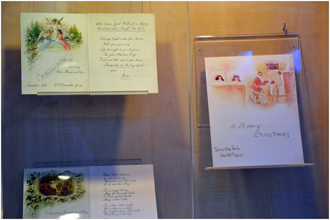 Государственный архив Российской Федерации (г. Москва) предоставил для этой выставки монастырю копии поздравительных открыток, которые дарили Великие княжны родителям. На одной из них княжна Мария изобразила спящих детей, которым святитель Николай приносит подарки. На другой – поздравление матери от княжны Татьяны, которая подписалась как «непослушная любимая дочка».