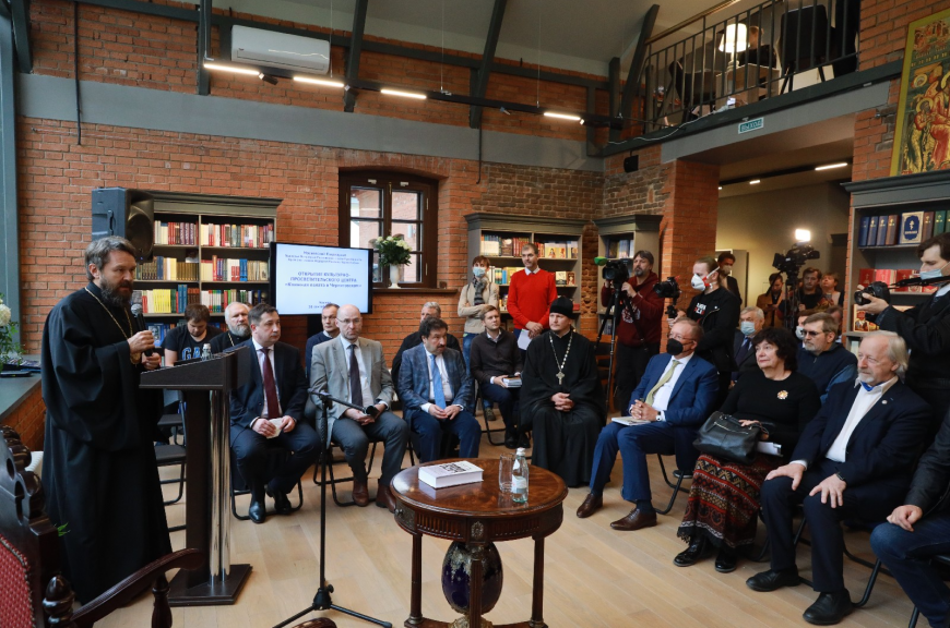 В приветственном слове Владыка Иларион отметил, что здание, в котором расположился Культурно-просветительский центр — одно из входящих в комплекс Черниговского Патриаршего подворья строений, которое подверглось комплексной реставрации. Ранее были отреставрированы главный учебный корпус Общецерковной аспирантуры и докторантуры, храмы в честь Усекновения главы Иоанна Предтечи и в честь святых мучеников Черниговских, колокольня. Близится к завершению ремонт в здании, в котором расположится Лингвистический центр для иностранных студентов Общецерковной аспирантуры.