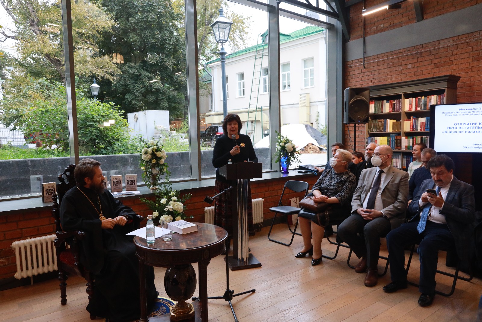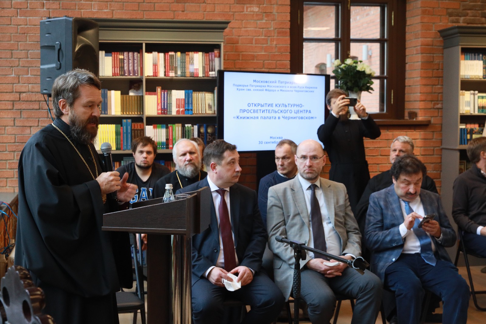 Открытие Культурного центра «Книжная палата в Черниговском» состоялось с участием ректора Общецерковной аспирантуры и докторантуры имени святых равноапостольных Кирилла и Мефодия, председателя Отдела внешних церковных связей Московского Патриархата митрополита Волоколамского Илариона, архиереев и клириков, представителей академического сообщества, деятелей культуры, искусства и ведущих представителей книжной отрасли.