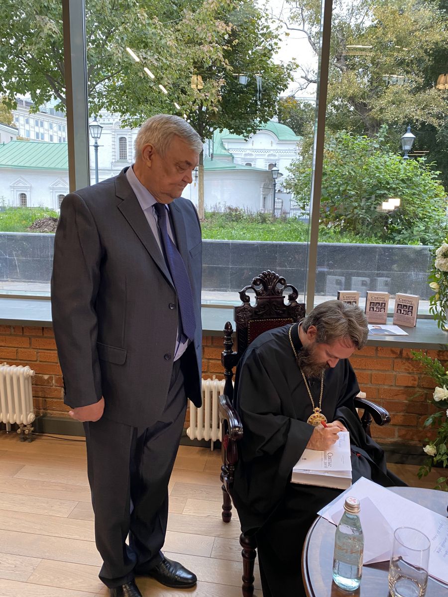 В завершение мероприятия митрополит Иларион провел для гостей экскурсию по Культурному центру, а также вручил памятный подарок — свою книгу «Святые наших дней», посвященную шести современным подвижникам, с которыми Владыка был лично знаком.