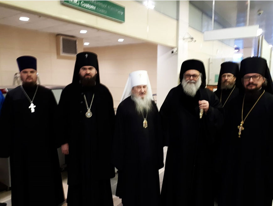 В столичном аэропорту Внуково-3 Блаженнейшего Патриарха Иоанна X встречали настоятель Антиохийского Подворья в Москве митрополит Филиппопольский Нифон, митрополит Казанский и Татарстанский Феофан, архиепископ Пятигорский и Черкесский Феофилакт, заведующий сектором протокола ОВЦС игумен Феофан (Лукьянов).