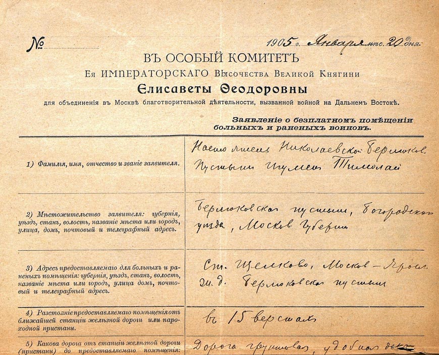 Александр Николаевич рассказал отцу настоятелю и С. С. Антипову о новых изысканиях в этой области и представил новые документы, обнаруженные в Центральном Государственном архиве г. Москвы, повествующие о работе лазарета и личном участии в этом Великой княгини.