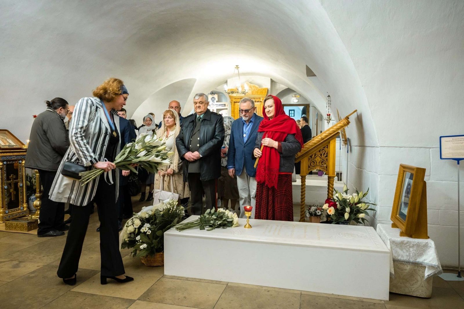 После заупокойной службы, молящиеся подходили к месту упокоения Великого Князя. Заместитель руководителя Молодёжной секции ИППО Тамара Григорьева возложила букет белых лилий.