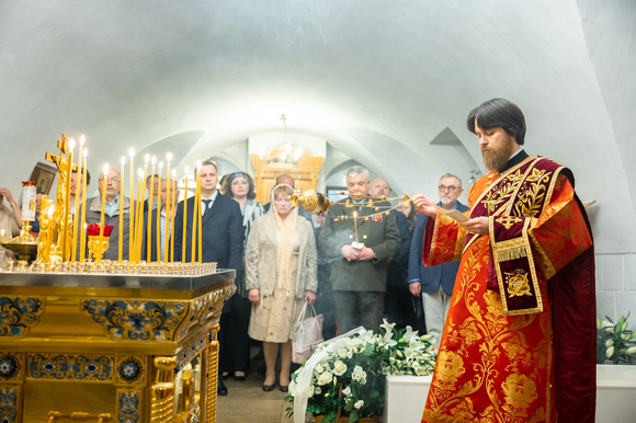 Заупокойную литию на могиле Сергия Александровича в усыпальнице рода Романовых — храме Романа Сладкопевца Новоспасского ставропигиального мужского монастыря совершил управляющий делами Московской Патриархии, Почётный член ИППО, наместник Обители митрополит Воскресенский Дионисий.