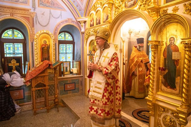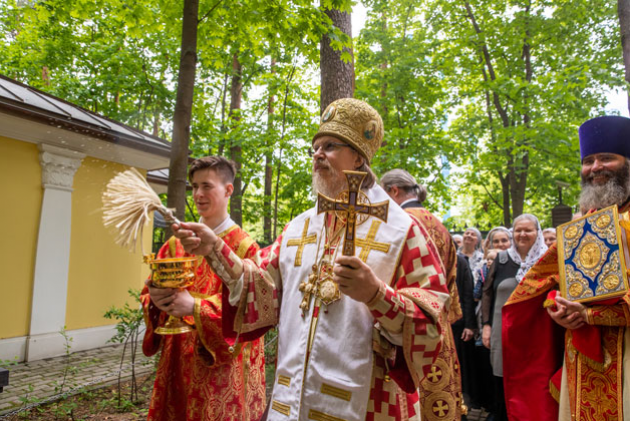 Спустя семь лет владыка Марк, ныне митрополит Рязанский и Михайловский, возглавил Божественную литургию в храме. И так же, как и семь лет назад, на богослужении присутствовали Председатель Императорского Православного Палестинского Общества Сергей Степашин с супругой Тамарой Владимировной и ктитор храма Игорь Ашурбейли.