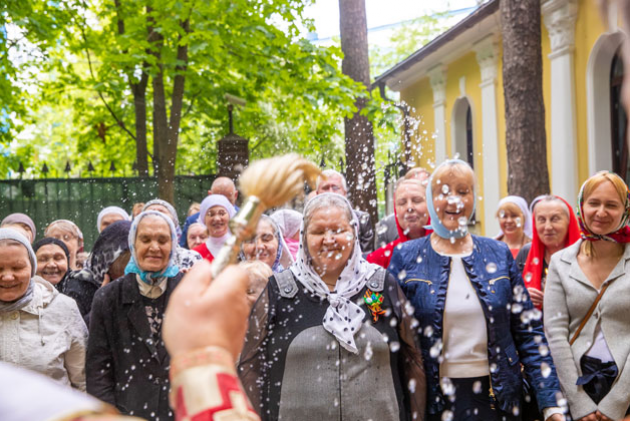 Другая гостья праздника – монахиня Елизавета (Крючкова), настоятельница Марфо-Мариинской обители в 1992–2006 годах. Матушка Елизавета не один и не два дня провела в архивах, изучая жизнь Великой княгини Елисаветы Феодоровны. Тем ценнее её впечатления от храма в Покровском-Стрешневе: «Отстояла сегодня на службе и поняла: мой храм. И до того хорош! Как игрушечка. Сначала показался мне белоснежным. И памятники Белому ангелу удивительные – настоящие произведения искусства. Я обомлела, когда увидела их во время крестного хода – сначала один, потом другой. И даже пошепталась с Елизаветой Фёдоровной». Матушка Елизавета выразила искреннюю признательность и благодарность Игорю Ашурбейли за восстановление храма.