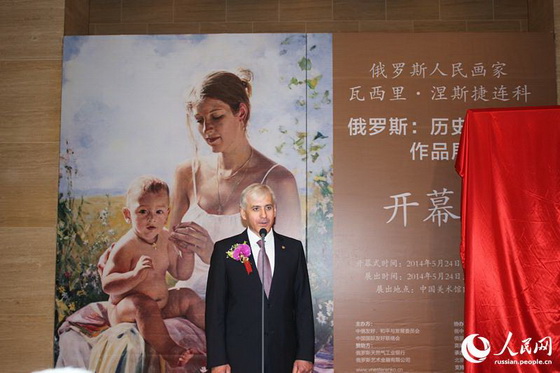 В церемонии открытия участвовали настоятель Успенского храма Пекина, а также Чрезвычайный и Полномочный Посол России в Китае Андрей Денисов, который высоко оценил творчество художника и отметил, что в ходе недавнего визита Президента России В.В.Путина в Шанхай был подписан пакет документов о двустороннем сотрудничестве. Данная выставка, подчеркнул российский дипломат, прекрасно демонстрирует обмены двух стран в области культуры и искусства и отметил и способствует распространению русской культуры в Китае.