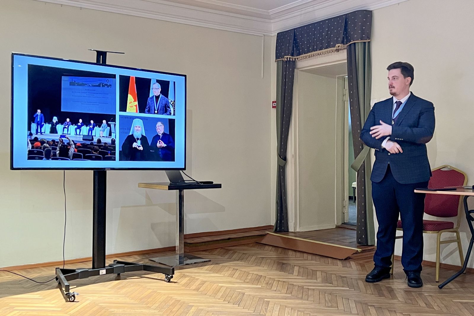 В ходе заседания Олег Робинов отметил наиболее важные проекты секции, реализованные в 2022 году, имеющие прямое отношение к уставной деятельности Общества, а также рассказал об открытии нового направления в структуре секции по взаимодействию с приходами Русской Церкви.