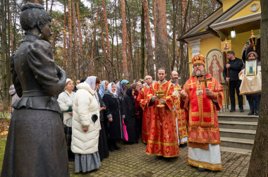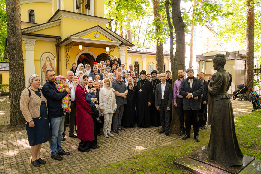 Сергей Вадимович отметил, что на территории Обители находится один из лучших скульптурных проектов, посвящённых Елисавете Феодоровне. Этот бронзовый портрет в полный рост представляет Великую княгиню такой, какой она была в то время, когда в её жизни совершился коренной перелом. От рук террориста погиб её супруг, московский генерал-губернатор и первый Председатель ИППО Великий князь Сергей Александрович. Пережитое ею потрясение определило выбор дальнейшего пути: Елисавета Феодоровна вскоре стала основательницей Марфо-Мариинской обители и вторым после супруга Председателем ИППО. Поэтому вторая скульптура святой Елисаветы в парке перед храмом – это уже портрет Великой Матушки, настоятельницы первой обители милосердия в Москве.