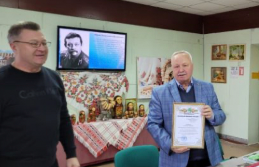 3 ноября писатель, секретарь ИППО, член Совета Общества Александр Долинин по поручению Председателя Общества Сергея Степашина вручил медали имени Юрия Беличенко за любовь к малой родине и вклад в его культуру.