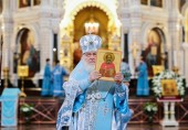 Святейший Владыка совершил славление Пресвятой Богородице, после чего вознес молитву святителю Тихону, Патриарху Московскому и всея России.