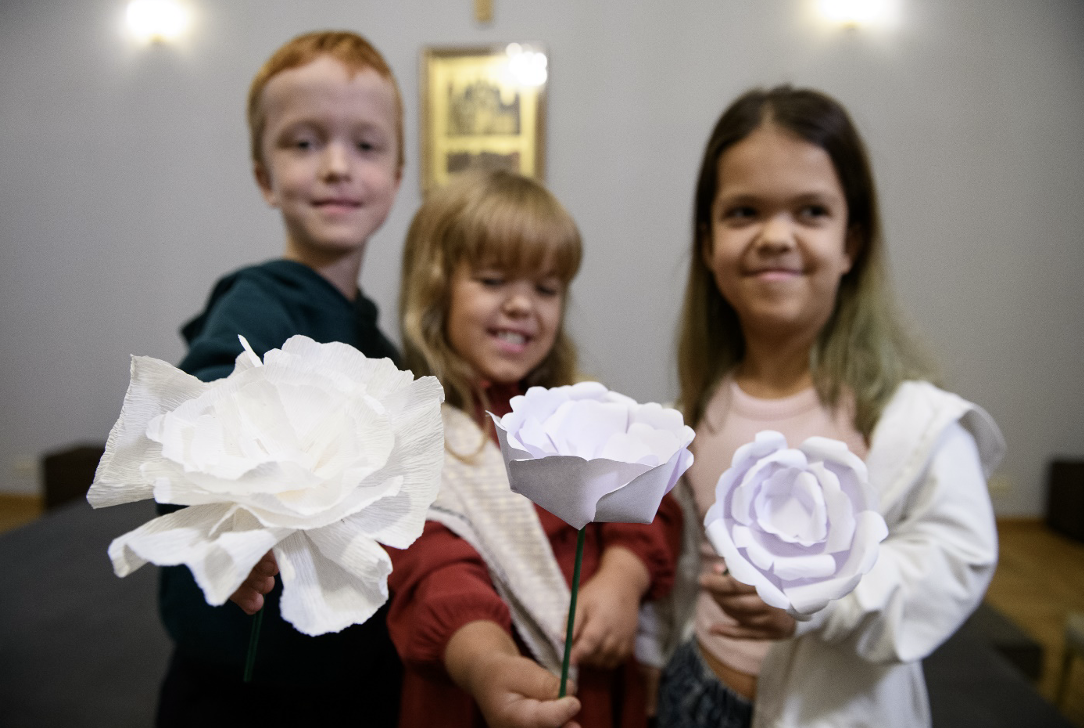 Помимо трапезы и концерта, для детей был организован мастер-класс «Белый цветок» - ребята своими руками смастерили прекрасные поделки из бумаги. Это – дань традиции, которая была заложена в начале XX века императором Николаем II и его супругой и активно поддерживалась великой княгиней Елизаветой Федоровной. В те годы люди всех сословий жертвовали деньги, получая взамен символ праздника: белый цветок.