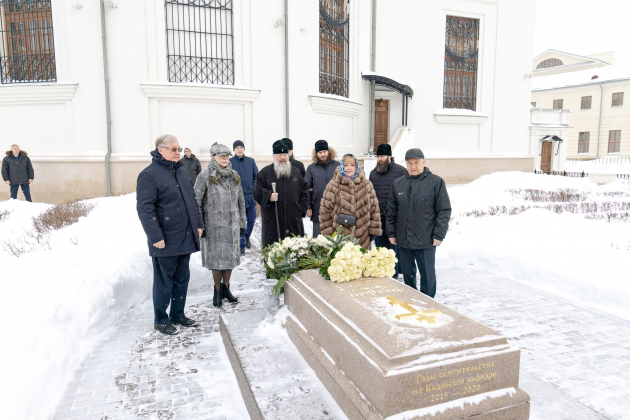 Затем Председатель ИППО посетил место захоронения митрополита Феофана (Ашуркова) и возложил букет цветов к могиле приснопамятного главы Татарстанской митрополии.