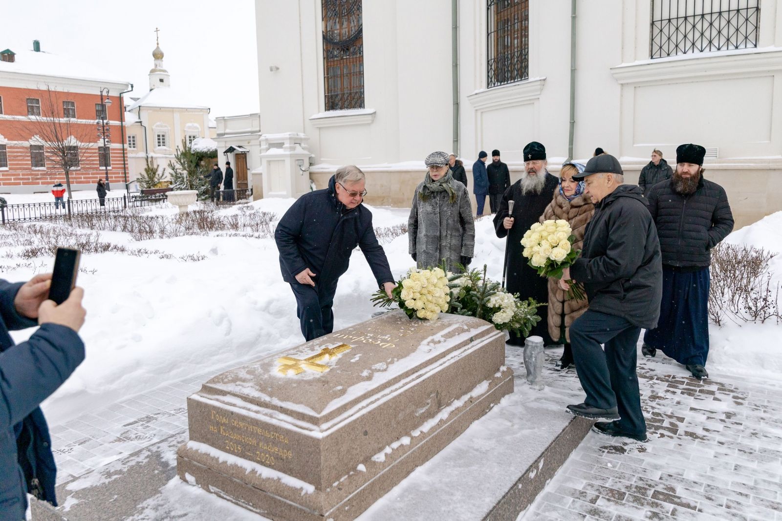 На территории Казанского Богородицкого монастыря высокого гостя приветствовал митрополит Казанский и Татарстанский Кирилл. Во встрече также приняла участие заместитель Председателя Счётной палаты Российской Федерации Галина Изотова.