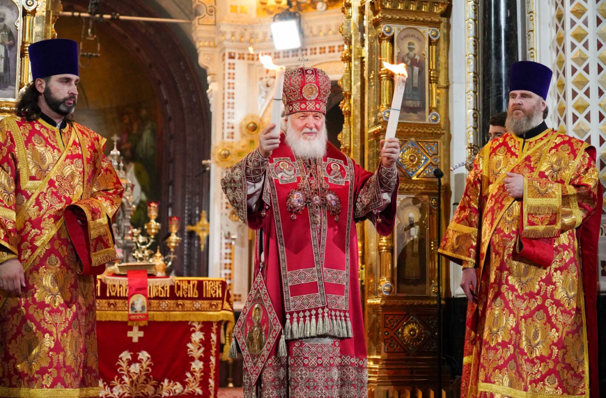 В праздник Светлого Христова Воскресения Предстоятель Русской Церкви возглавил торжественное богослужение в Храме Христа Спасителя
