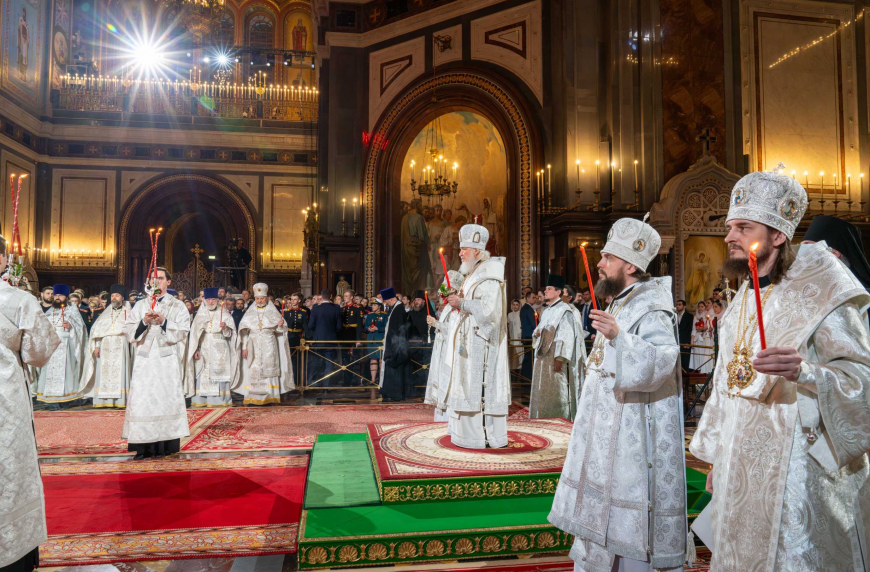 В праздник Светлого Христова Воскресения Предстоятель Русской Церкви возглавил торжественное богослужение в Храме Христа Спасителя