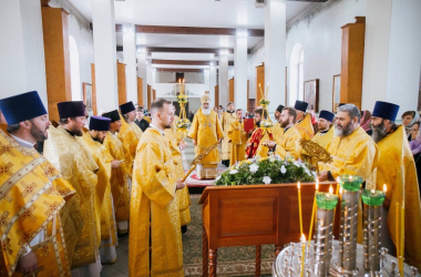 Проповедь перед причастием произнес архиепископ Люберецкий и Подольский Аксий.