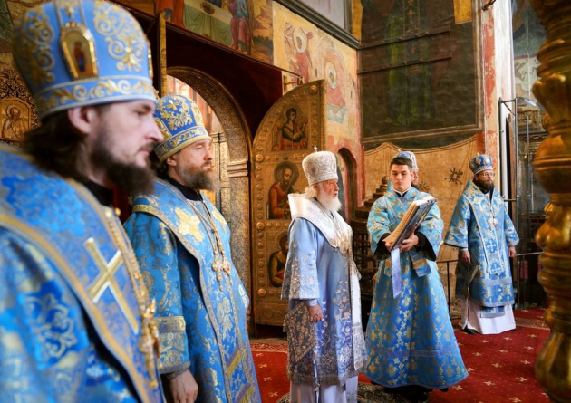 В праздник Успения Пресвятой Богородицы Святейший Патриарх Кирилл совершил Литургию в Успенском соборе Московского Кремля