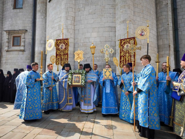 В завершение состоялся крестный ход вокруг Успенского собора.