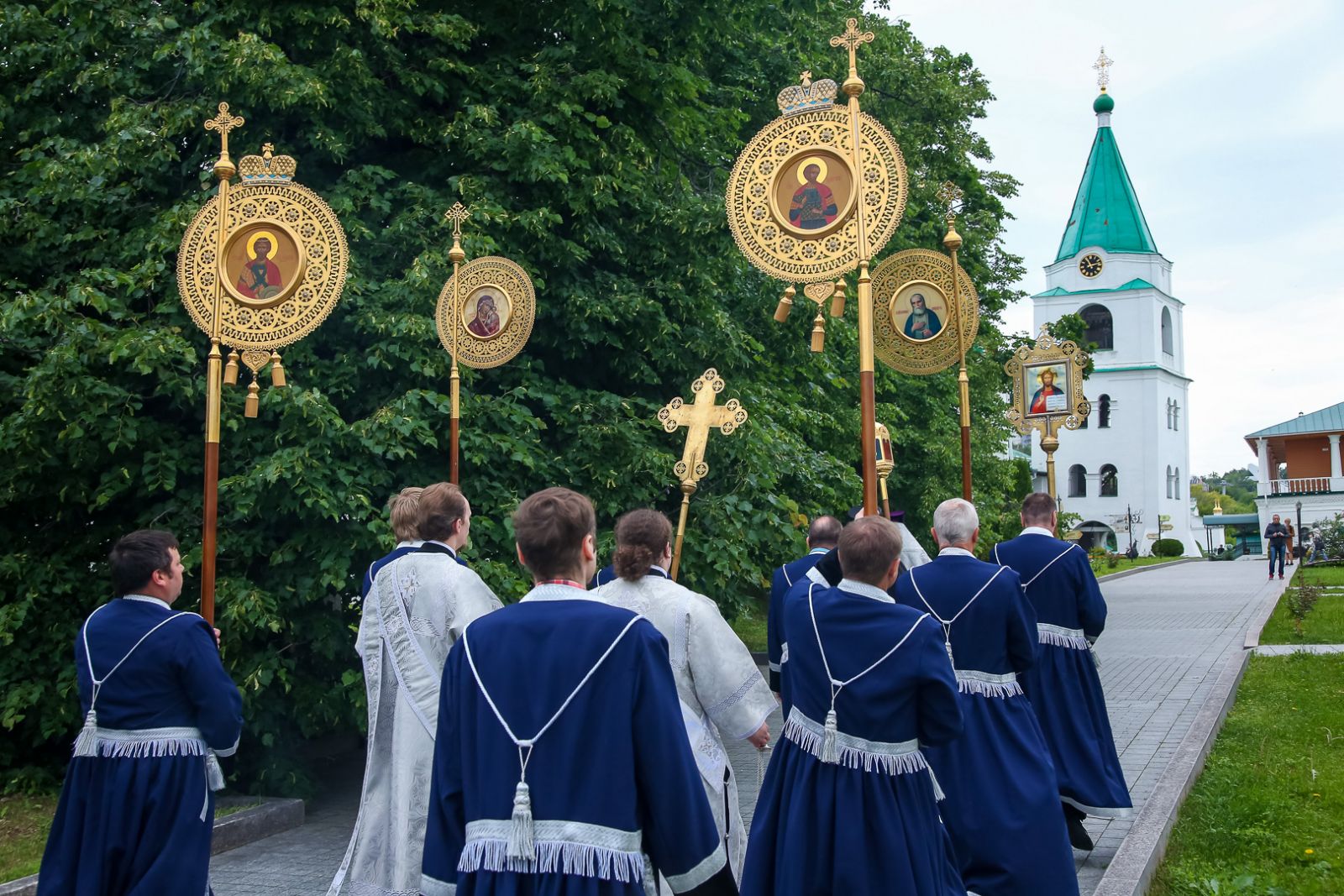 По окончании литургии в нижегородском Печерском монастыре верующие прошли крестным ходом по территории обители.