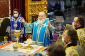 За Литургией Святейший Патриарх Кирилл рукоположил диакона Никиту Стратилата, клирика московского подворья Свято-Троицкой Сергиевой лавры, первого проректора Николо-Угрешской духовной семинарии, в сан пресвитера.