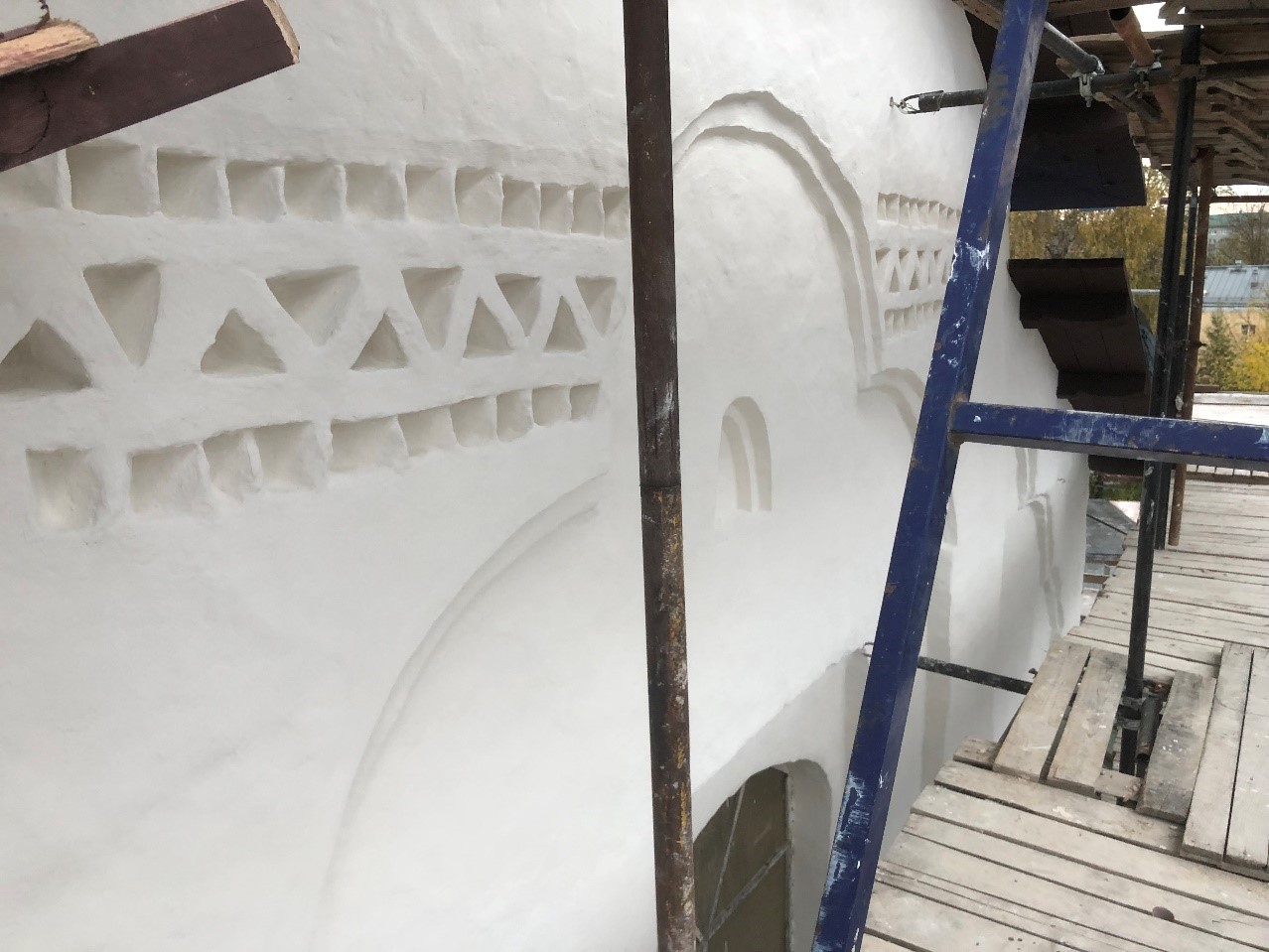 Псковский декор на западном фасаде после реставрации.
