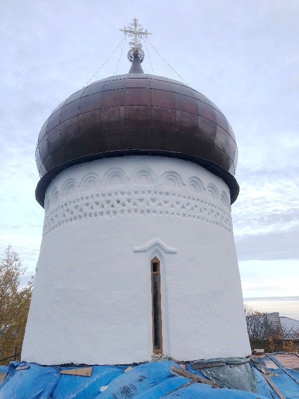 Восстановление исторических форм барабана, купола и реставрация бронзового креста.