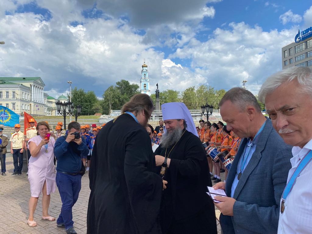 Владыка Евгений в своем приветственном слове выразил пожелание, чтобы в следующем, юбилейном для города Екатеринбурга году, награды юным участникам регаты вручались возле памятника Цесаревичу Алексею, работа над которым уже началась при участии Екатеринбургского отделения ИППО.