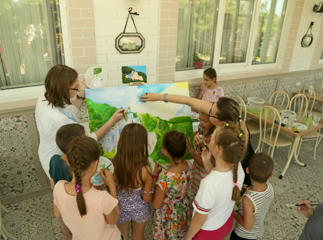 Ярким событием для детей стало проведение мастер класса по написанию картины под руководством опытного художника. Начинающие художники изобразили Николаевский храм Свято-Успенской Святогорской Лавры. По их словам, лучшим подарком для них станет передача картины Святейшему Патриарху Московскому и всея Руси Кириллу. С такой просьбой обратились юные художники к участникам делегации Православной гуманитарной миссии.