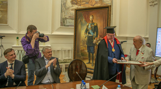 Мероприятие завершилось торжественной церемонией вручения академических регалий Почетного члена Российской академии художеств государственному деятелю, Председателю ИППО Сергею Степашину.