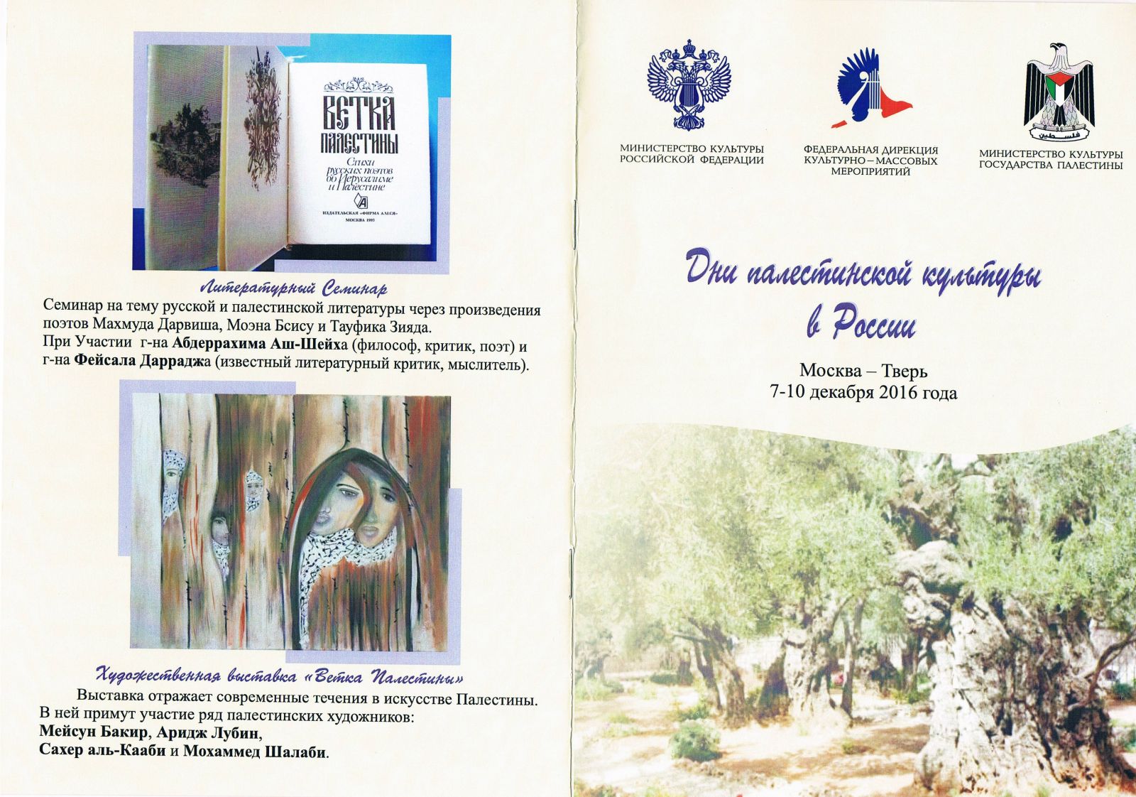 Последующие мероприятия пройдут в Москве и Твери. Это, в частности, открытие художественной выставки «Ветка Палестины» в Государственном музее Востока, показы фильмов «Привет, Вифлеем», «Рай сегодня», литературный семинар, концерты ансамбля народного танца.