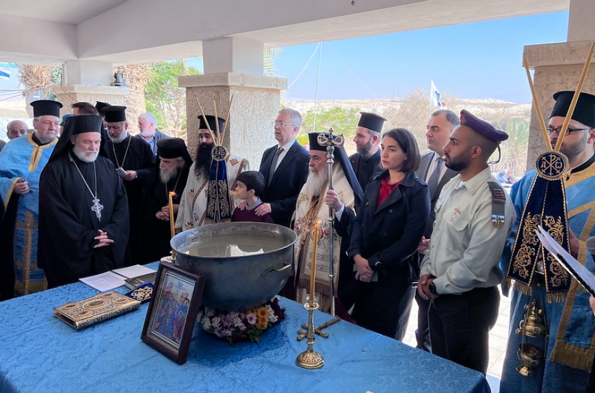 Затем по благословению Начальника Миссии иеромонах Афанасий принял участие в праздничном крестном ходе духовенства Иерусалимской Церкви от монастыря св. Иоанна Предтечи в местечке Каср-эль-Якуд к берегу реки Иордан, где Иерусалимский Патриарх Феофил совершил освящение воды.