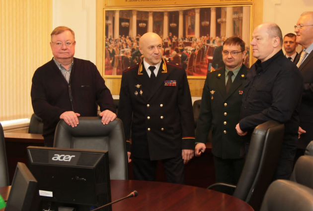 В рабочей встрече приняли участие начальник военного института полковник юстиции Андрей Юрьевич Кийко, статс - секретарь - заместитель министра МЧС России генерал - лейтенант Алексей Михайлович Серко, профессор кафедры теории и методики непрерывного профессионального образования нашего института генерал - лейтенант милиции Виктор Петрович Сальников, председатель Совета ветеранов военного института полковник Вячеслав Семенович Алехов, командование и ветераны института из числа оргкомитета предстоящих мероприятий.