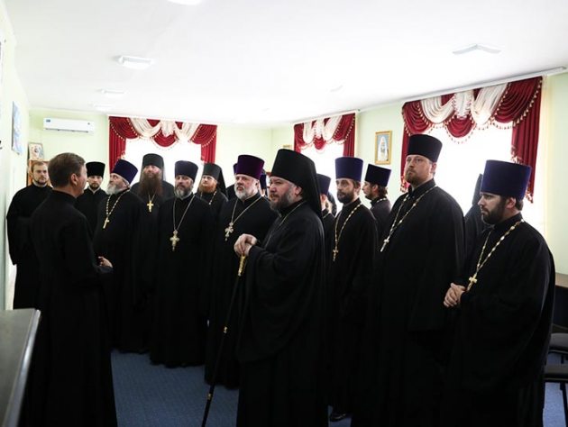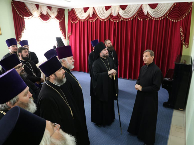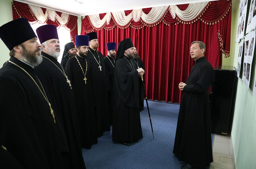 Отделом религиозного образования и катехизации Шахтинской епархии в актовом зале центра была подготовлена фотовыставка «Царственные страстотерпцы: служение России». Памятное мероприятие открыл Преосвященнейший епископ Шахтинский и Миллеровский Симон. По благословению владыки епархиальный древлехранитель, заместитель председателя епархиального ОРОиК, действительный член ИППО Илья Геннадиевич Шарков рассказал епархиальному духовенству о милосердно-благотворительной деятельности и социальном служении семьи последнего русского Императора, а также о смысле и нравственном значении подвига страстотерпчества.