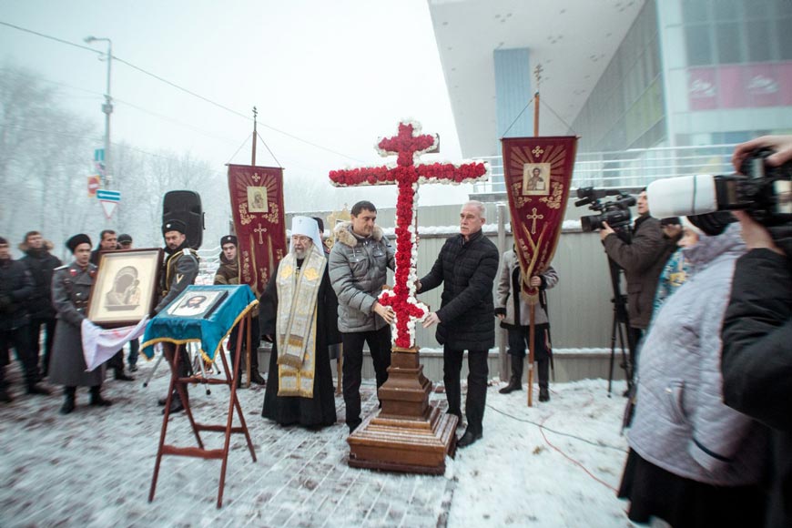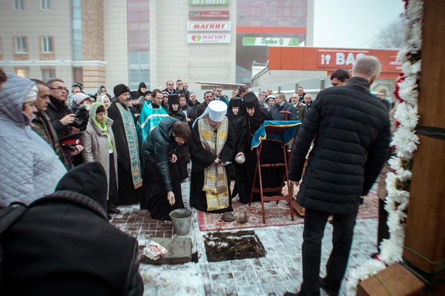 После торжественной церемонии закладки первого камня в строительство колокольни с надвратным храмом в Иверском храме Спасского монастыря началось служение Божественной литургии. Праздничное богослужение возглавил митрополит Анастасий.