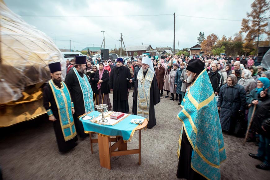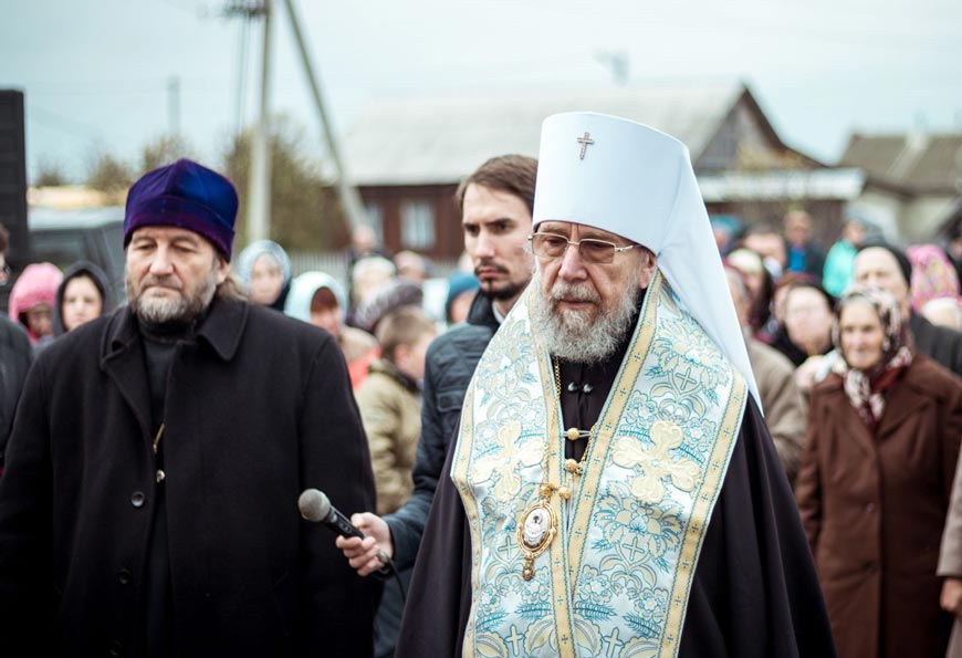 – Дорогие братья и сёстры, уважаемый Сергей Иванович! Всех вас сердечно поздравляю с праздником Покрова Пресвятой Владычицы нашей Богородицы! Замечательно, что именно в этот день мы возводим купола на храм, который строится на месте, где располагался старинный храм, утраченный в пожаре. На этом месте остались одни головешки. Но сейчас здесь вновь стоит прекрасный храм. Хочется верить, что совсем скоро в этом храме вновь будут совершаться богослужения, что этот храм, как и прежде, будет сердцем этого населённого пункта, его главным украшением. Каждый человек, проезжающий мимо, будет обращать внимание на животворящие кресты этой церкви, будет устремлять свой взор к небу. Сегодня храм увенчается куполами, он станет привлекательным внешне, но главное, чтобы внутри этого храма была жизнь, чтобы как в прежние времена люди приходили сюда, соприкасались с тем богатство, которое оставили нам предшествующие поколения, и обретали здесь смысл земного бытия», – сказал владыка.