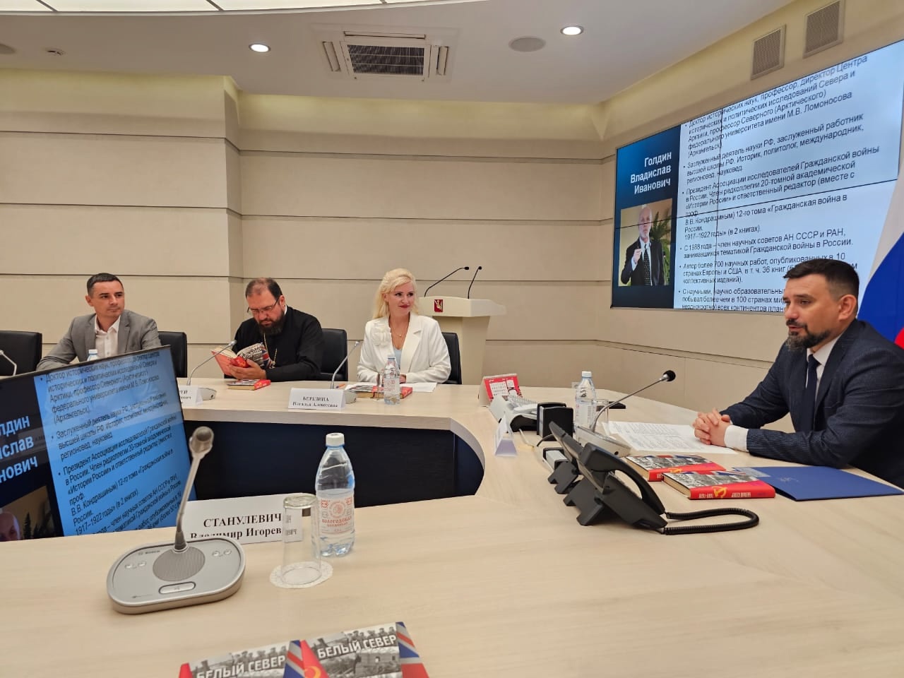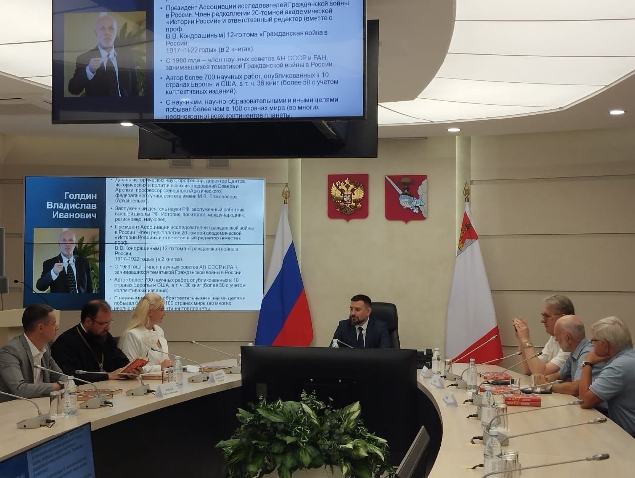 В рамках заседания по инициативе руководителя Архангельского отделения ИППО Владимира Станулевича прошла передача издания «Белый Север.1918-1920 гг.: Мемуары и документы». Владимир Игоревич представил автора книги – доктора исторических наук, профессора Владислава Голдина. Всех собравшихся приветствовала руководитель Вологодского отделения ИППО Наталья Березина.