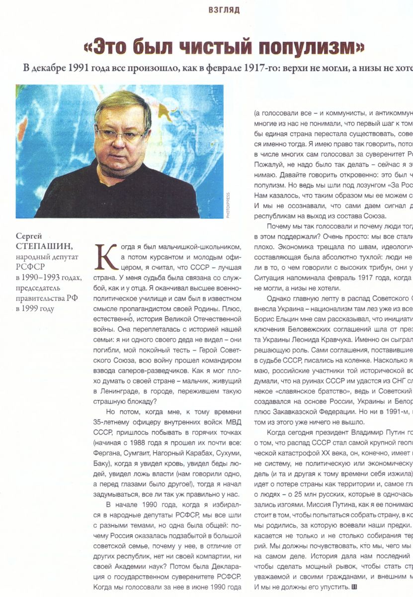 В начале 1990 года, когда я избирался в народные депутаты РСФСР, мы все шли с разными темами, но одна была общей: почему Россия оказалась подзабытой в большой советской семье, почему у нее, в отличие от других республик, нет ни своей компартии, ни своей Академии наук? Потом была Декларация о государственном суверенитете РСФСР. Когда мы голосовали за нее в июне 1990 года (а голосовали все – и коммунисты, и антикоммунисты), многие из нас не понимали, что первый шаг к тому, чтобы единая страна перестала существовать, совершался именно тогда. Я имею право так говорить, потому что в числе многих сам голосовал за суверенитет России. Пожалуй, не надо было так делать – сейчас я это понимаю. Давайте говорить откровенно: это был чистый популизм. Но ведь мы шли под лозунгом «За Россию!». Нам казалось, что таким образом мы ее можем спасти. И мы не осознавали, что сами даем сигнал другим республикам на выход из состава Союза.