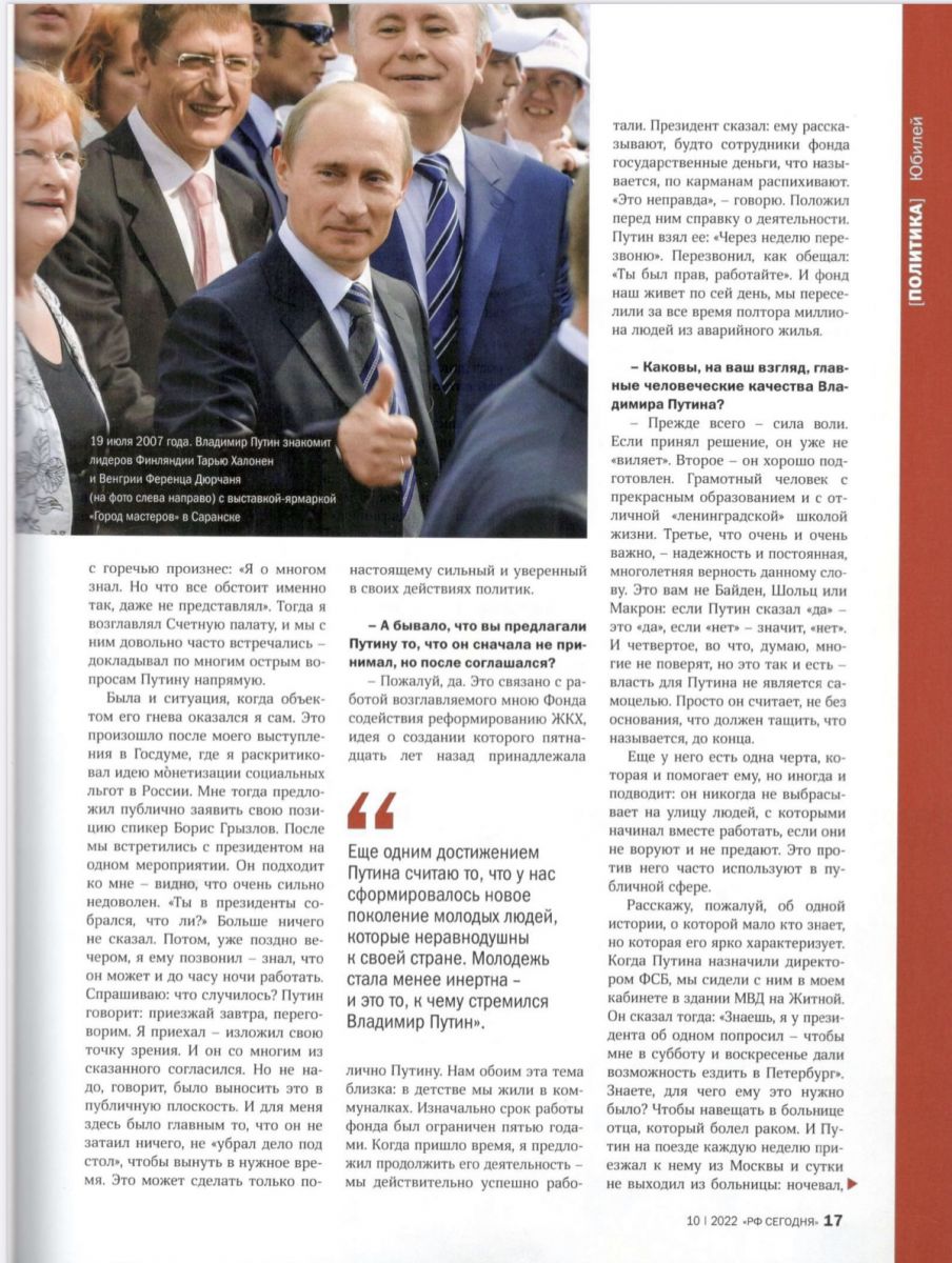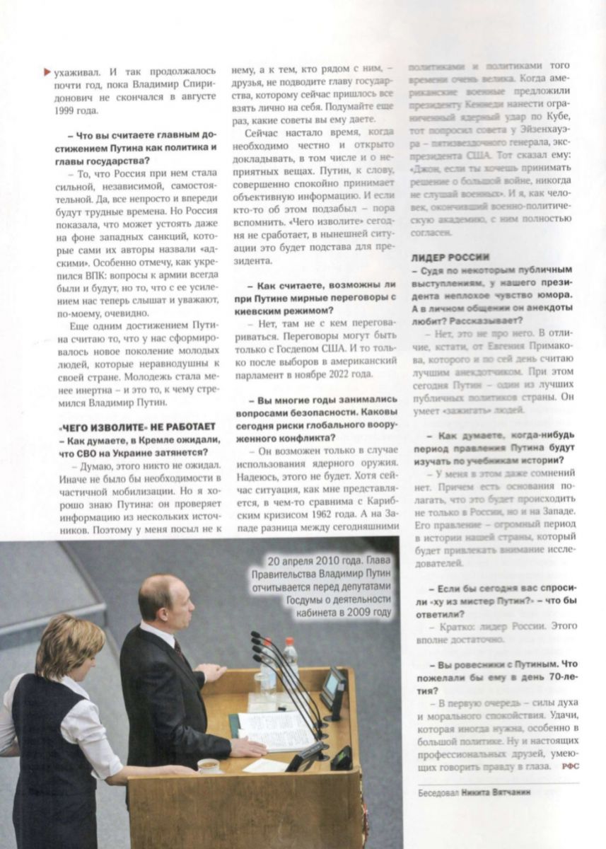 Владимир Путин, которому 7 октября 2022 года исполняется 70 лет, — лидер, которому в условиях гибридной войны с Западом пока нельзя передавать кому-то другому управление страной, чтобы Россия не пошла по пути Югославии.