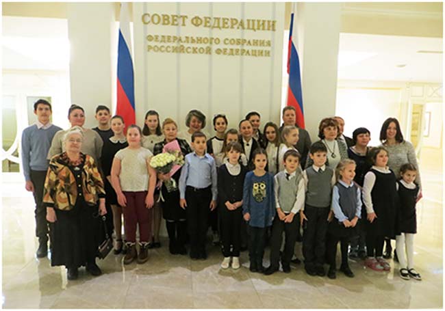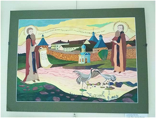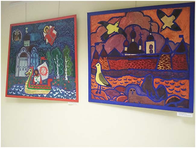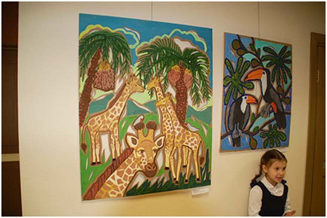 А можно увидеть на полотнах художников, выставленных в экспозиции в Совете Федерации. Это работы кисти таких мастеров, как Алла Афоненко, Нина Ионова-Щербакова, Елена Смирнова, Сергей Платонов, а также красочные картины юного поколения авторских студий «Трёхозерье» и «Образ». Детская студия «Трёхозерье» из Ново-Косино г. Москвы уже известна в разных странах, где экспонировались работы воспитанников руководителя студии художника, лауреата Премии Президента России Сергея Платонова. А дети художественной студии «Образ» из подмосковного наукограда Протвино показывали своё творчество в штаб-квартире ООН в Женеве. Руководит студией художник и искусствовед Тамара Кулешова.