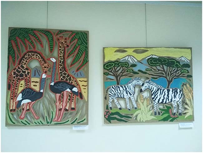 Трудно рассказать словами о том собрании представленных картин, которые украсили стены целого этажа в Совете Федерации – всего 162 работы. Объёмные сюжеты мастера декоративно-прикладного искусства Елены Смирновой внимательнейшим образом рассматривали все, кто так и не смог пройти мимо них. Кажется, что видишь перед собой акварель, настолько прозрачно переданы хрустальные струи фонтана перед дворцом в Санкт-Петербурге, а на самом деле это картина, созданная из природных материалов – крапивы, осоки, веточек и бересты, а ещё неожиданней – из шелухи чеснока.