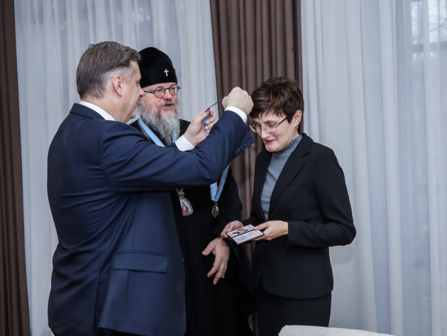 О.В. Шабуневич также вручил удостоверение и почетный знак новому члену ИППО - Марине Ремовне Астаховой.
