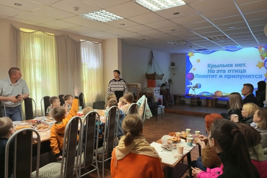 Участники мероприятия с удовольствием отгадывали загадки, смотрели документальные видеоматериалы о первых полётах в космос Белки и Стрелки, а также о покорении космоса человеком, после чего участников ждало чаепитие и просмотр семейной комедии. Подобные благотворительные встречи стали уже доброй традицией.