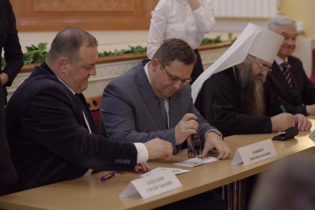 От имени Председателя ИППО Сергей Байдаков вручил специальный знак ИППО митрополиту Георгию в память о юбилее и в знак благодарности за активную деятельность. Нижегородский архипастырь также получил одну из самых высоких наград ИППО – «Орден Великого Князя Сергия Александровича».