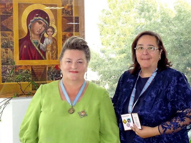 По поручению Председателя ИППО Сергея Степашина руководитель регионального отделения Ирина Талдыкина вручила знаки и билеты действительных членов ИППО настоятелю храма иконы Божией Матери «Нечаянная Радость» протоиерею Антонию Тростникову, известному журналисту ВГТРК «Волгоград-ТРВ» Инессе Шевченко, заслуженному художнику РФ, дважды лауреату Государственной премии Волгоградской области, почетному члену Российской академии художеств, почетному гражданину Волгоградской области Владиславу Ковалю и соучредителю Союза бонистов РФ, члену редакционного совета и коллегии журнала «Номизма» Алексею Авчухову. Алексей Авчухов передал Владиславу Ковалю подарок от ИППО – книгу с изображением икон, написанных супругой Чрезвычайного и Полномочного посла Японии в России, Хироко Кодзуки.